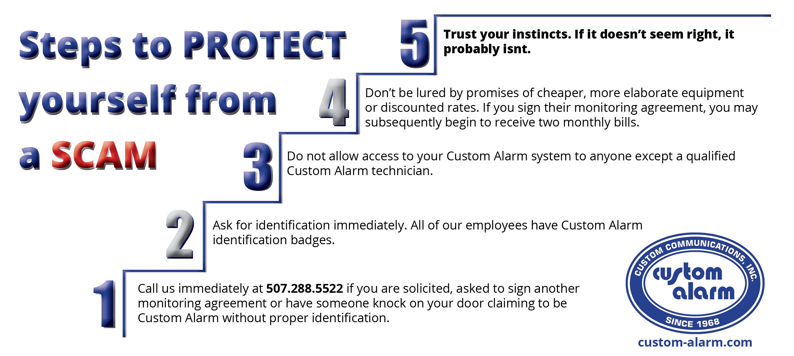 Custom Alarm is a family, locally owned business with over 50 years of experience providing peace of mind; we are not affiliated with any other alarm companies. If you ever have any questions about your current system or services, or would like to upgrade or make any changes, please give us a call anytime at 507.288.5522.
